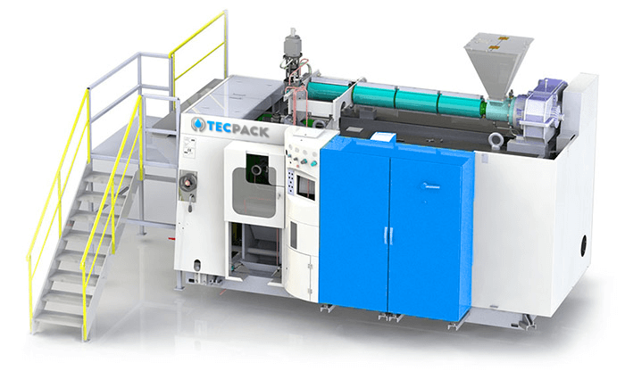 Aujourd’hui, fort de ces nombreuses années d’expérience, TECPACK a imaginé une machine de soufflage linéaire 100 % électrique : FASTBLOW 2 destinée à la production de contenants en plastique à partir de préformes et PET.